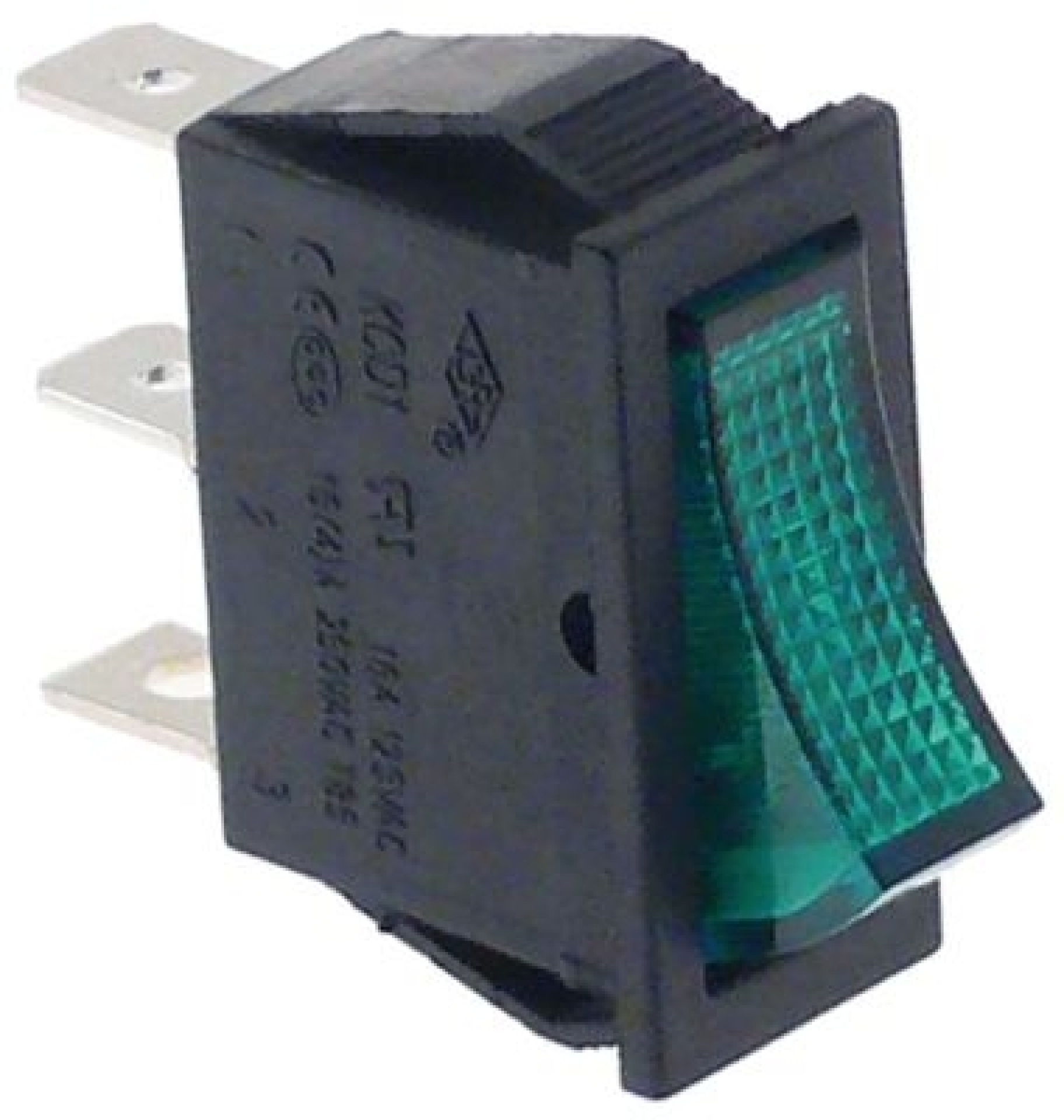 Kolébkový přepínač montážní rozměry 30x11mm zelený 1NO/kontrolka 24V přípojka Faston samec 6,3 mm
