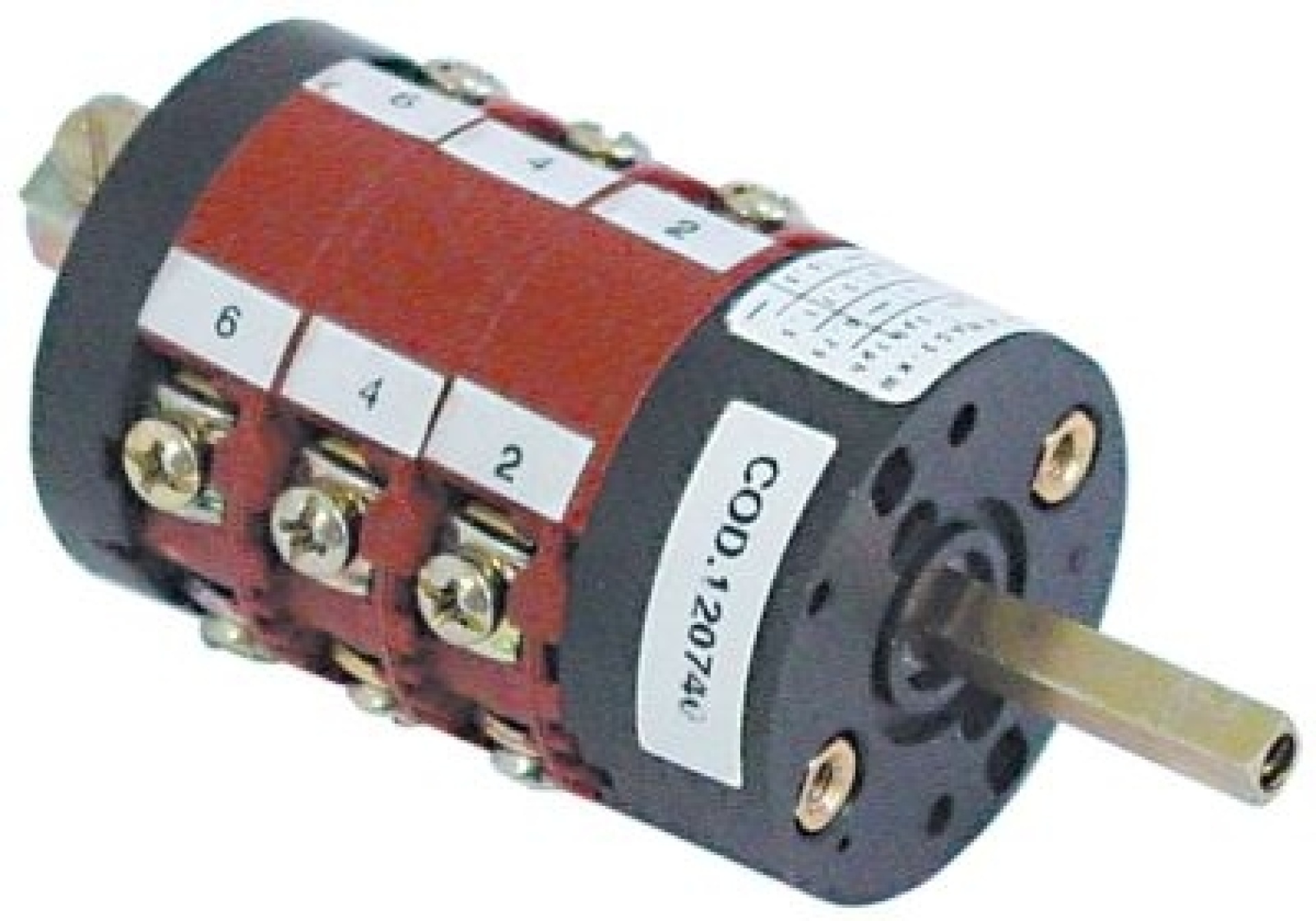 Otočný vypínač 16A ø hřídele 5x5mm L hřídele 23mm přípojka šroub 400V 1-0-2-3 polohy 4