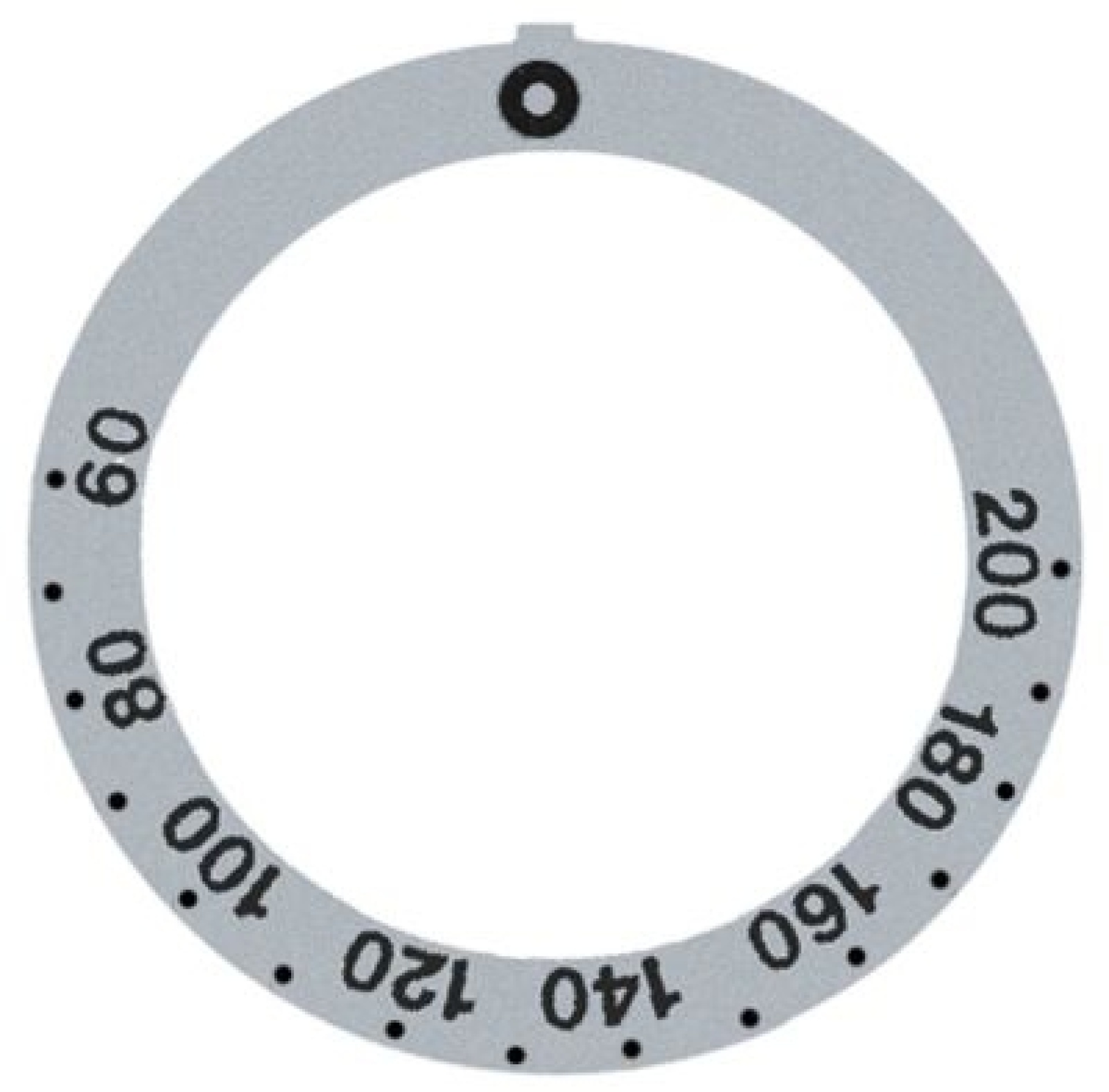 Symboly otočného ovladače termostat t.max. 200°C 60-200°C ø vnitřní půměr 45,5mm stříbřitý