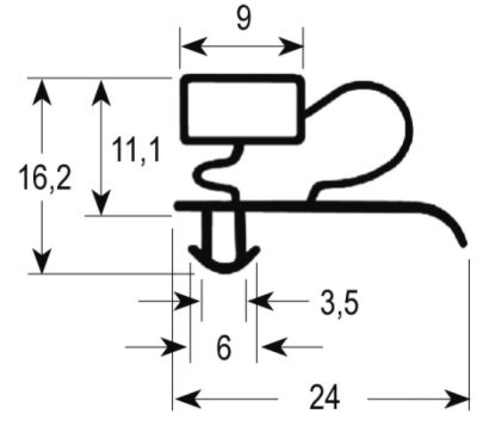 Těsnění chladicí techniky profil 9333 W 670mm L 1460mm velikost zátky