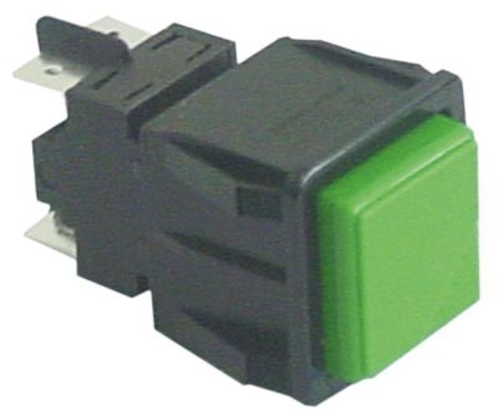 Tlačítko montážní rozměry 28,5x28,5mm zelený 2NO 250V přípojka Faston samec 6,3 mm - 16A