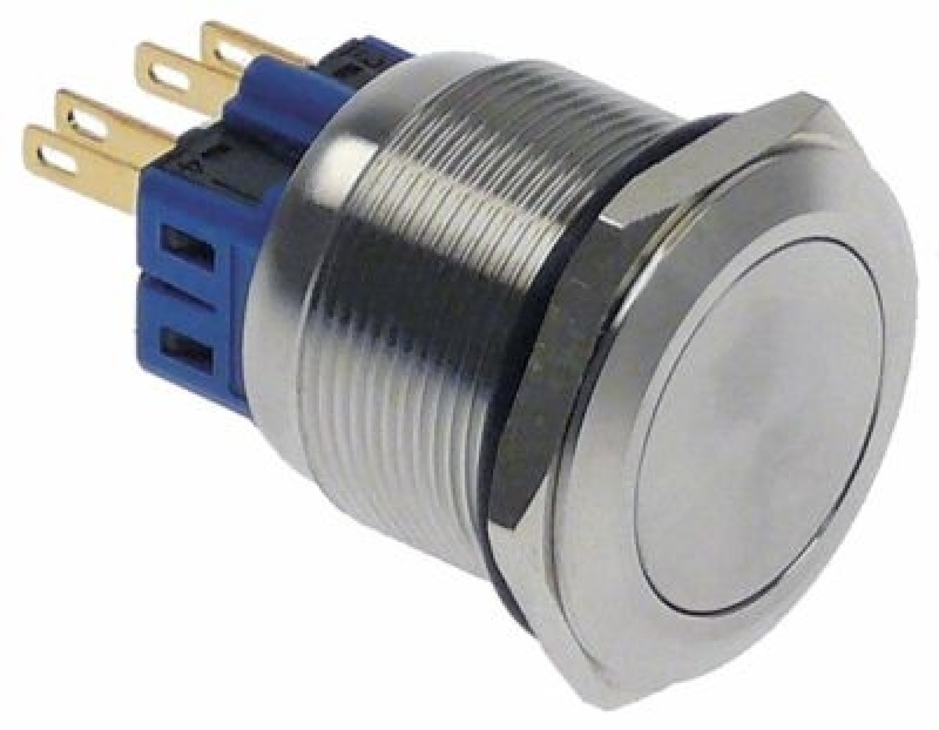 Tlačítko montážní rozměry ø25mm stříbřitý 1NO/1NC 250V přípojka Faston samec 2,8 mm - 5A