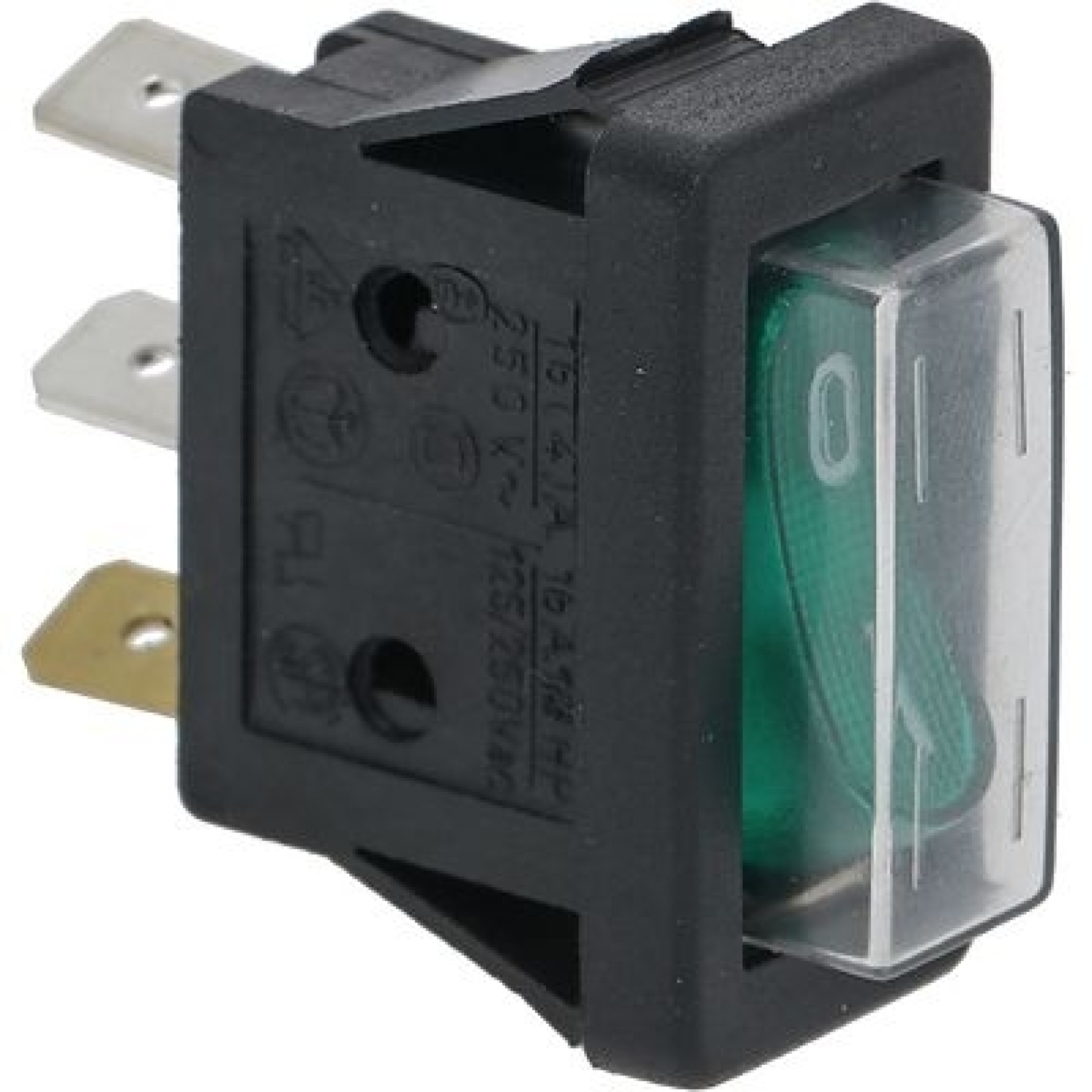 Rocker switch mounting measurements 30x11mm green 1NO/indicator light 250V 0-I 16A