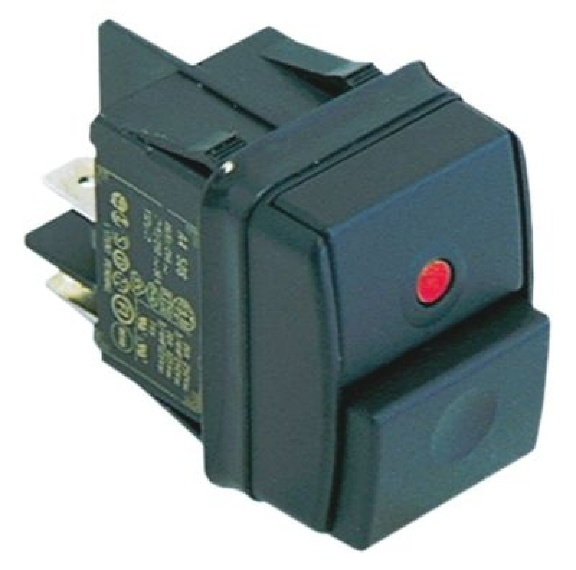 Tlačítko montážní rozměry 30x22mm červený 2NO 250V přípojka Faston samec 6,3 mm s dvojitým tlačítkem